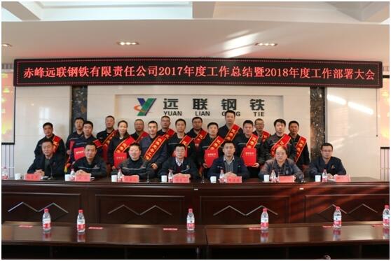 会议由公司行政副总经理张喜军主持。公司总经理佟国山代表公司董事会在大会上做了《远联钢铁公司2017年度工作总结暨2018年工作部署报告》。公司党委书记刘欣在大会上做了重要讲话。同时,大会对公司2017年度劳动模范、先进单位、安全标兵、优秀共产党员、优秀党务工作者和先进党支部进行了表彰。